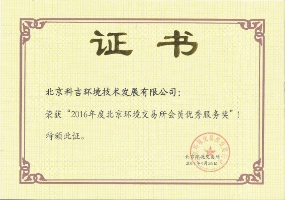 北京環(huán)境交易所會(huì)員優(yōu)秀服務(wù)獎(jiǎng)