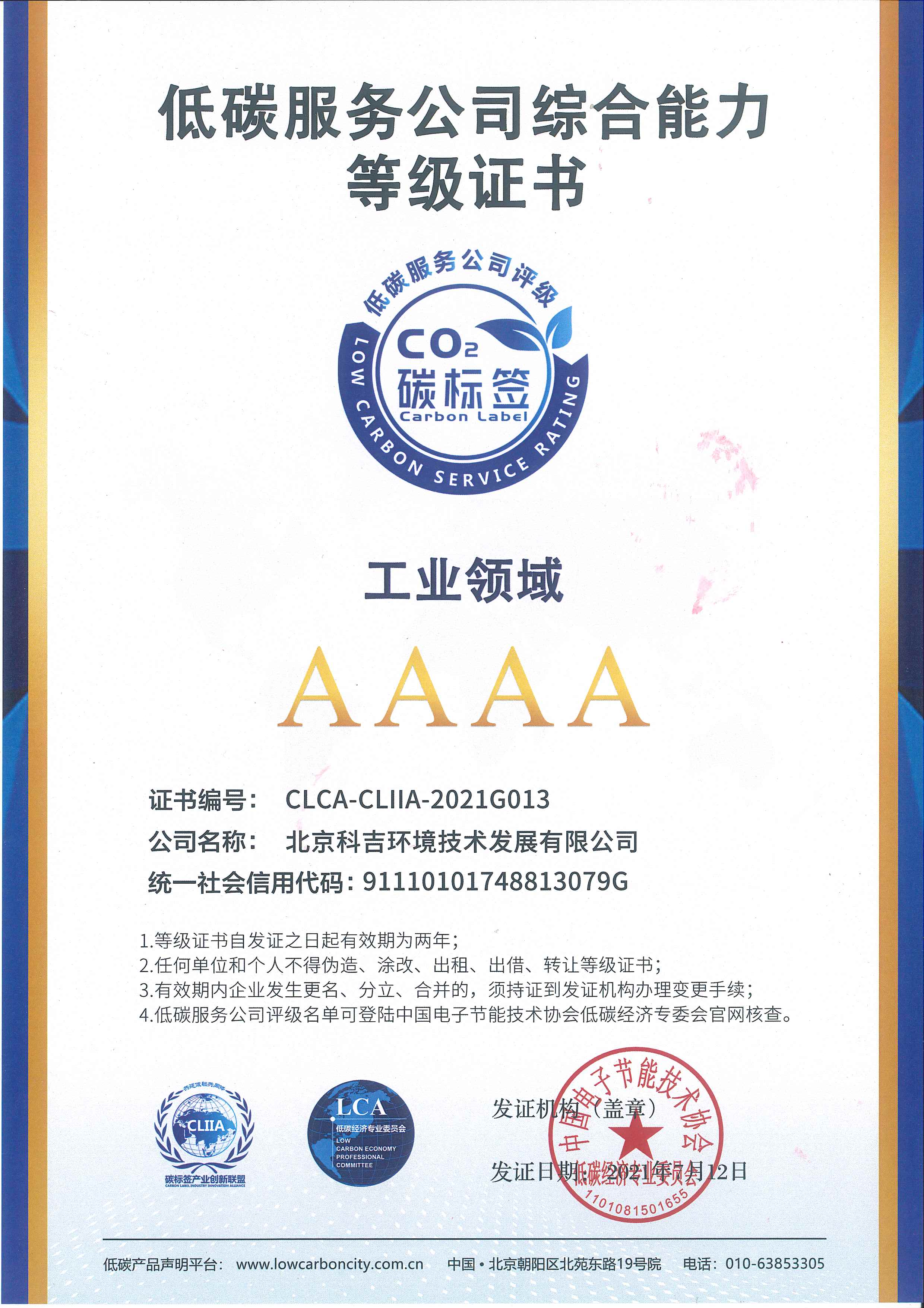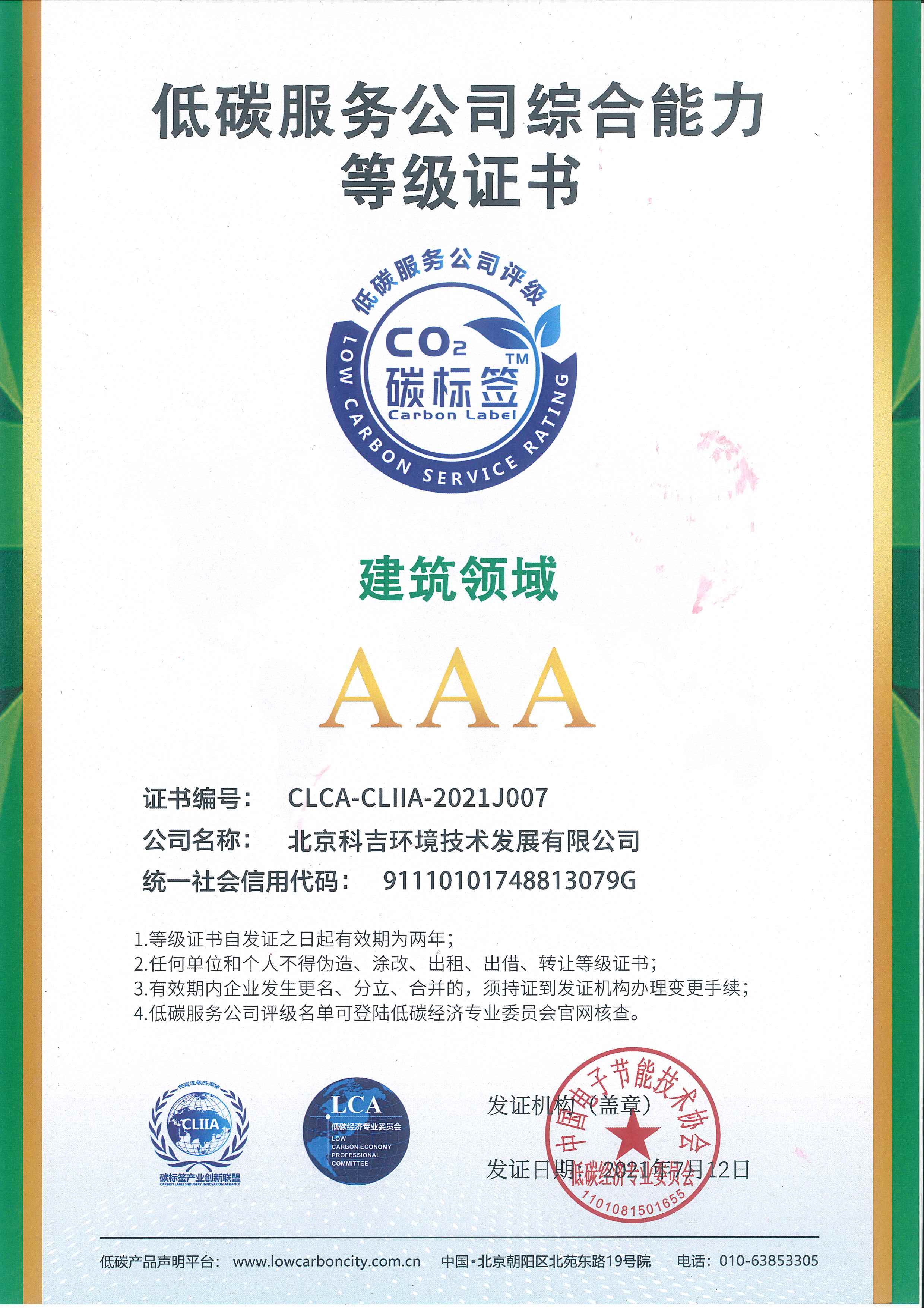 低碳服務(wù)公司綜合能力AAA級(jí)證書(shū)(建筑領(lǐng)域)