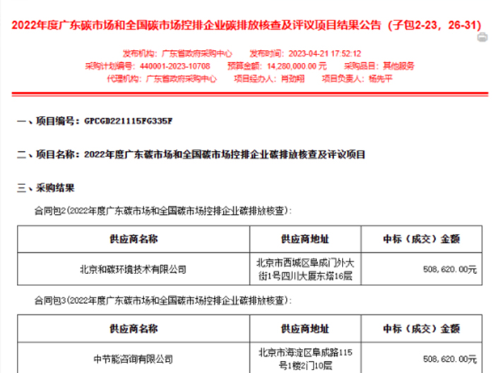 2023年4月21日,廣東省政府采購(gòu)中心公布“2022年度廣東碳市場(chǎng)和全國(guó)碳市場(chǎng)控排企業(yè)碳排放核查及評(píng)議項(xiàng)目結(jié)果公告”,科吉成功中標(biāo)第5子包??萍菄?guó)內(nèi)較早從事重點(diǎn)排放單位碳排放核查的第三方機(jī)構(gòu)之一,擁有豐富的碳...