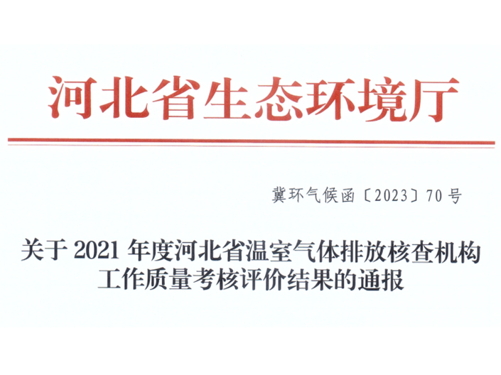 2023年1月19日,河北省生態(tài)環(huán)境廳公布了《關(guān)于2021年度河北省溫室氣體排放核查機(jī)構(gòu)工作質(zhì)量考核評(píng)價(jià)結(jié)果的通報(bào)》(冀環(huán)氣候函〔2023〕70號(hào)),在2021年度河北省溫室氣體排放核查服務(wù)機(jī)構(gòu)的工作質(zhì)量考評(píng)中,北京科吉...
