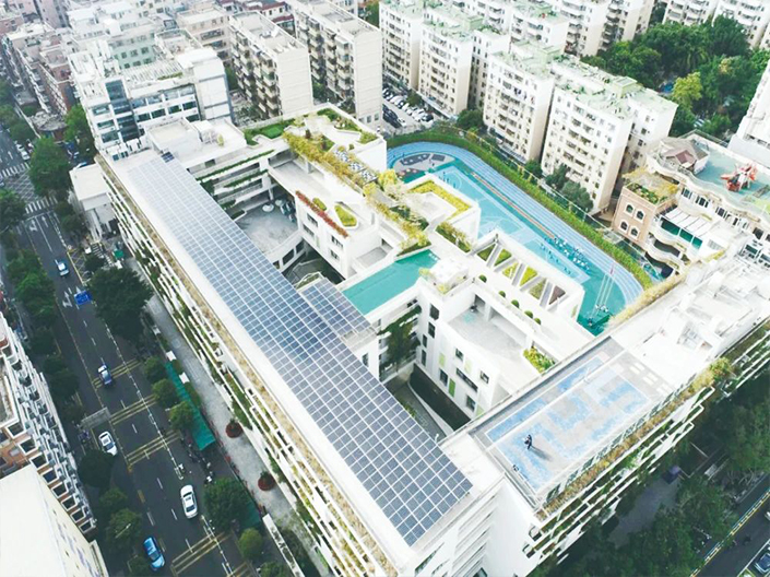 近零碳校園是深圳探索“近零碳”城市的其中一環(huán)。深圳作為國(guó)內(nèi)首批低碳試點(diǎn)城市,已率先打造不同種類的近零碳示范場(chǎng)景,通過從能源、交通、產(chǎn)業(yè)、建筑等多方面發(fā)力樹立國(guó)內(nèi)城市降碳標(biāo)桿?!鴪D為深圳福田區(qū)新洲小學(xué)俯...