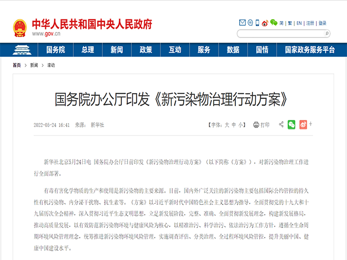 新華社北京5月24日電 國務院辦公廳日前印發(fā)《新污染物治理行動方案》(以下簡稱《方案》),對新污染物治理工作進行全面部署。有毒有害化學物質的生產(chǎn)和使用是新污染物的主要來源。目前,國內外廣泛關注的新污染物主...